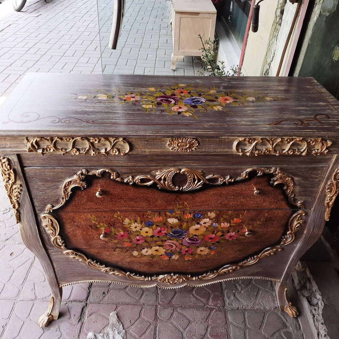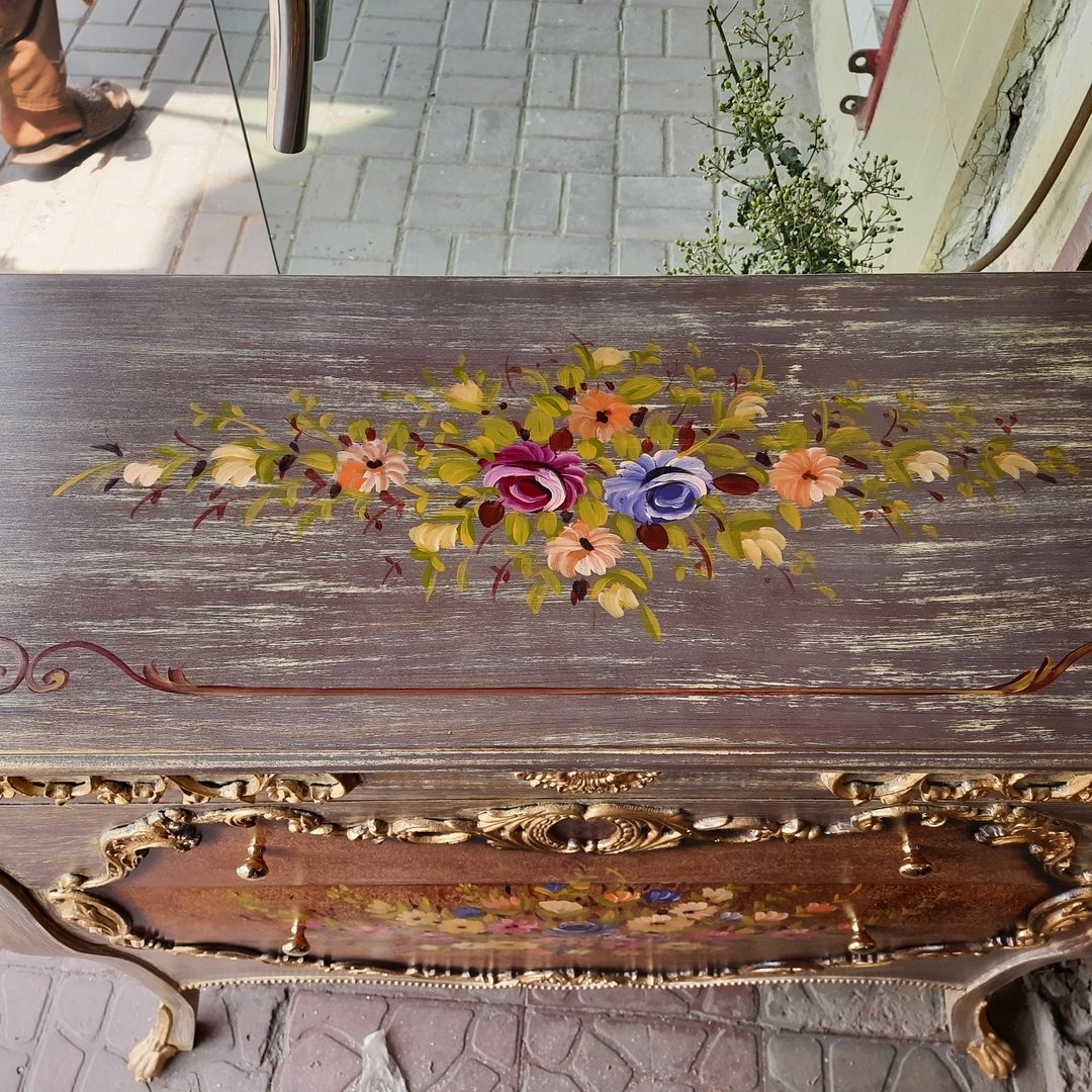 Chest of Drawers Hand Painted. Comes with beautiful Golden Metal Carving.