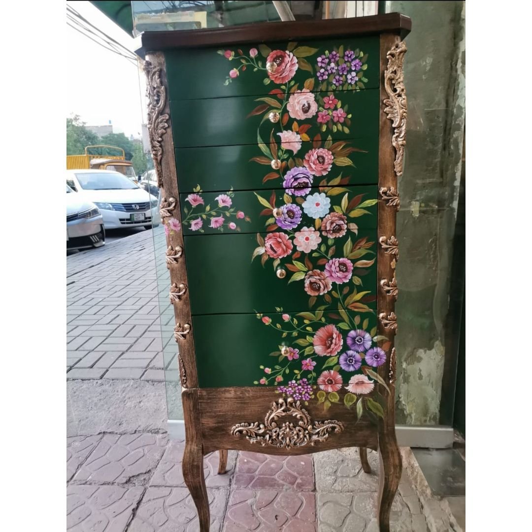 Chest of Drawers Hand Painted. Comes with beautiful Golden Metal Carving.