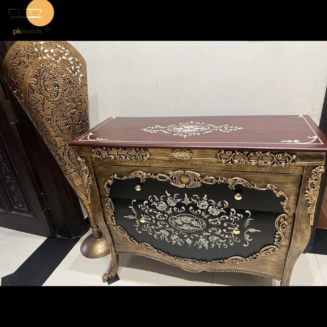 Chest of Drawers Hand Painted. Comes with beautiful Golden Metal Carving.