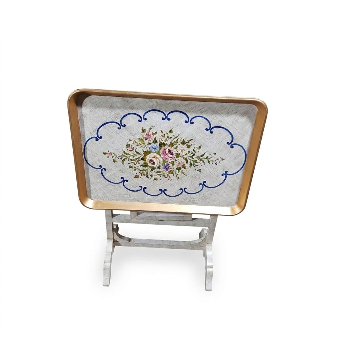 A beautifully crafted hand-painted foldable tray table made from solid Kikar wood for lasting durability. Finished in elegant Deco paint with delicate floral artwork, it adds charm to any space. Its foldable, multi-purpose design makes it perfect for serving, tea time, or everyday use.