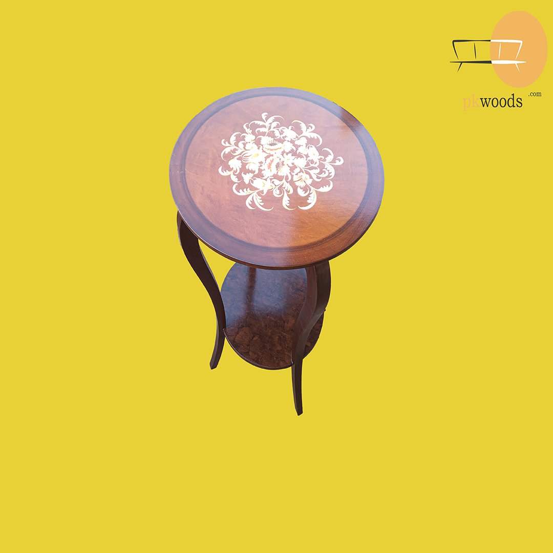 Enhance your home décor with this elegant hand-painted wooden side table by PK Woods. Featuring a beautiful gold and brown pattern with a stylish round top, this table adds a luxurious touch to any living room, bedroom, or lounge. The lower shelf provides extra space for décor or small essentials, making it both decorative and functional.