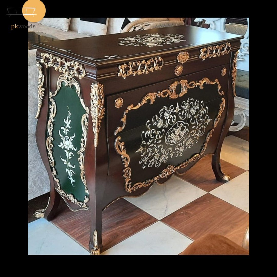 Chest of Drawers Hand Painted. Comes with beautiful Golden Metal Carving.