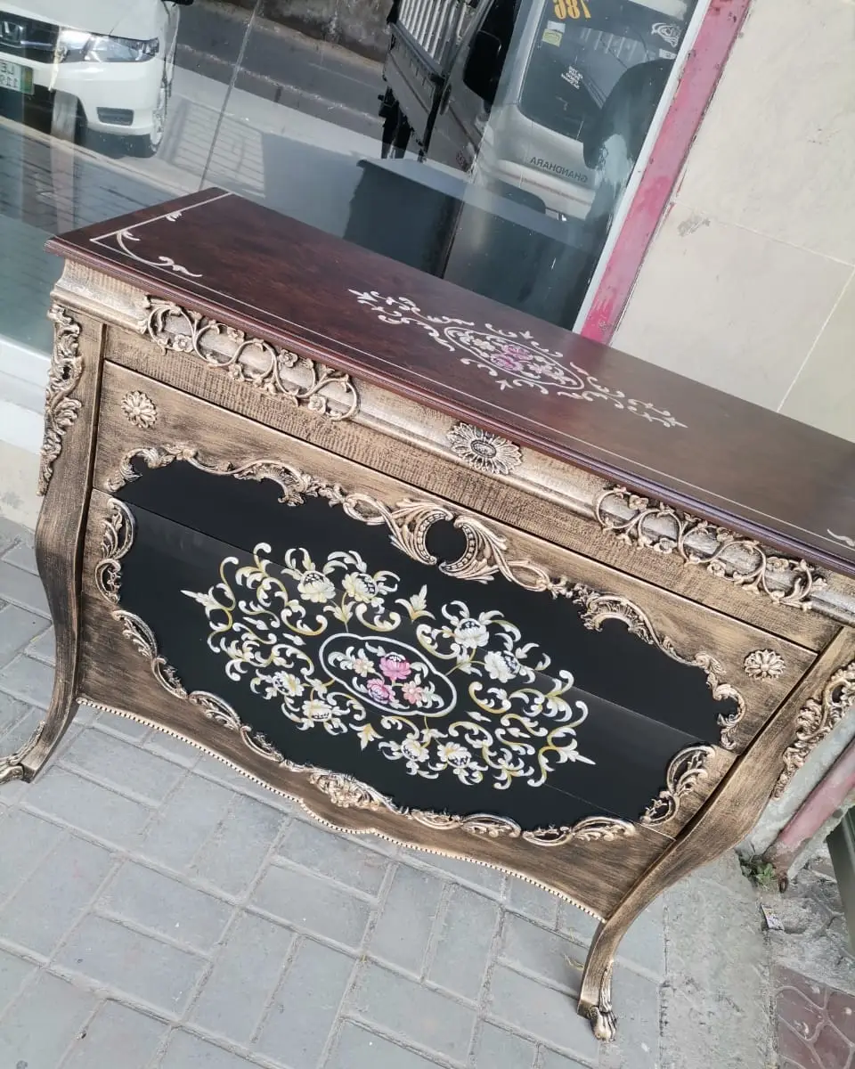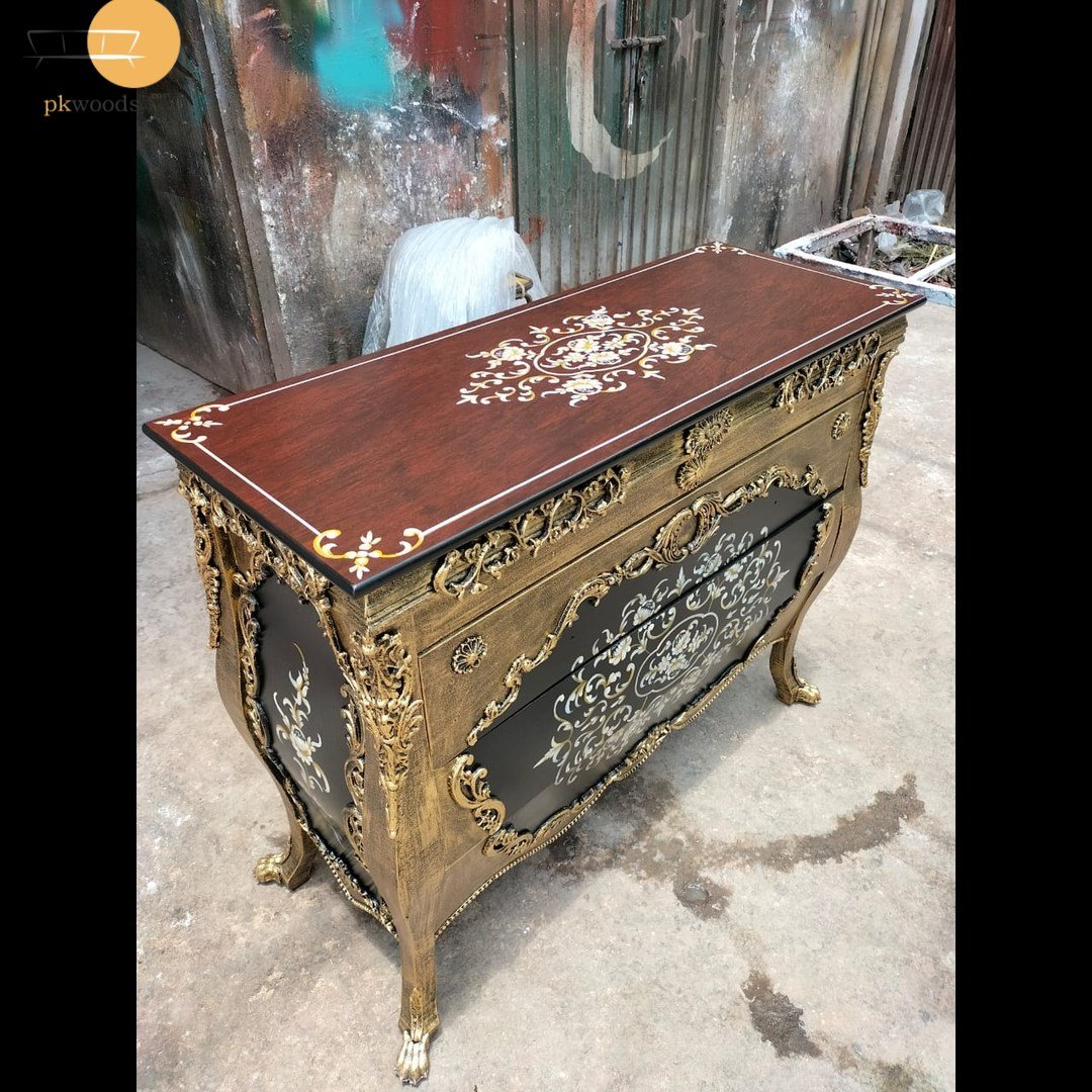 Chest of Drawers Hand Painted. Comes with beautiful Golden Metal Carving.