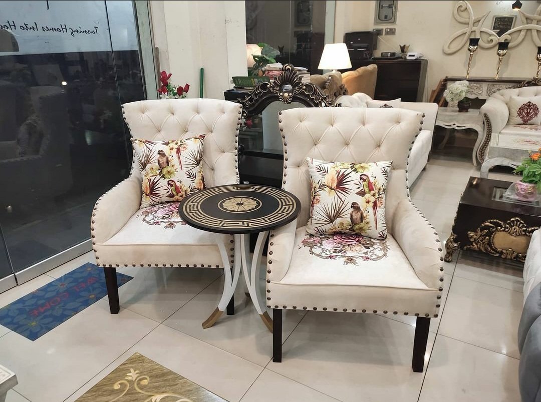 A stylish pair of wooden bedroom chairs crafted from solid wood with a natural finish. Each chair features a cushioned seat with high-quality Molty foam for added comfort. Ideal for bedroom corners, vanities, or sitting areas—combining durability with a sleek, timeless look.